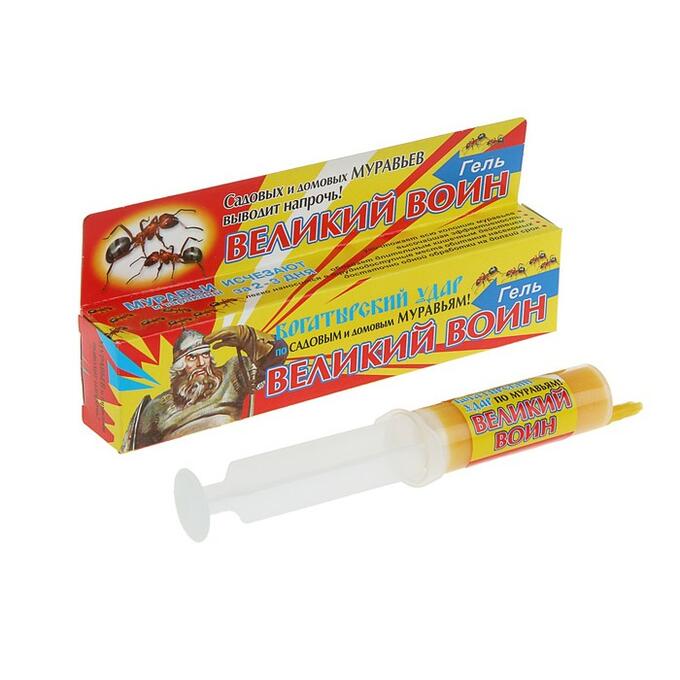 Способ применения: Гель Великий воин предназначен для борьбы с садовыми и домашними муравьями, а также тараканами. Специально под
