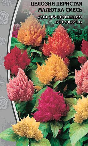 ГРЕБЕНЧАТАЯ СМЕСЬ Разнообразие эффектных окрасок Очаровательная обильно цветущая смесь однолетников с оригинальными соцветиями разных расцветок, высотой 30–40 см. Цветки мелкие с желтым, оранжевым, розовым и пурпурно-красным околоцветником, собраны в массивное соцветие с более или менее крупными, глубокими извилинами по верхнему краю, напоминают петушиный гребень. Предпочитает солнечные места. Цветет с начала июля до сентября. Используют для клумб, вазонов, рабаток, как комнатное растение. Прекрасно подходят для зимних букетов.