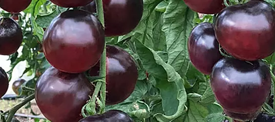 Изюминка среди черри - томатов! Раннеспелый (от всходов до начала созревания 95-100 дней), высокоурожайный, индетерминантный гибрид для теплиц и открытого грунта ( с обязательной подвязкой). Плоды округлые, устойчивы к растрескиванию, массой 35-50 г, на разрезе тёмно-вишнёвого цвета, с повышенным содержанием сахаров, витамина С, очень вкусные, ароматные и сладкие. Уборку можно проводить как отдельно, так и целыми кистями.