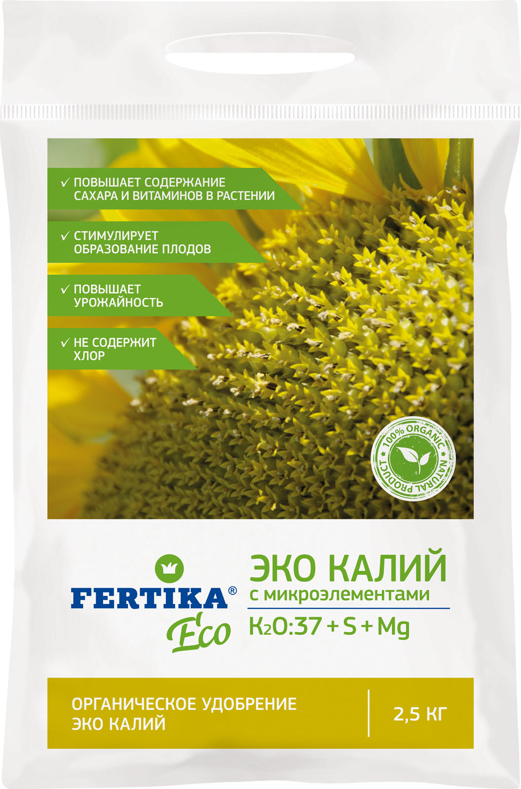 ЭКО КАЛИЙ - Бесхлорное калийное удобрение имеет растительное происхождение, полученное в результате переработки лузги подсолнечника.